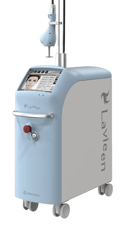 Equipamento moderno utilizado em procedimentos estéticos a laser, indicado para clínicas que desejam oferecer tratamentos avançados com alta tecnologia.