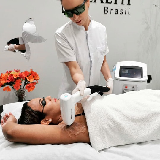 Comprimento do laser Yag (1064nm): indicado em áreas como coro cabeludo, axilas e pubis.
